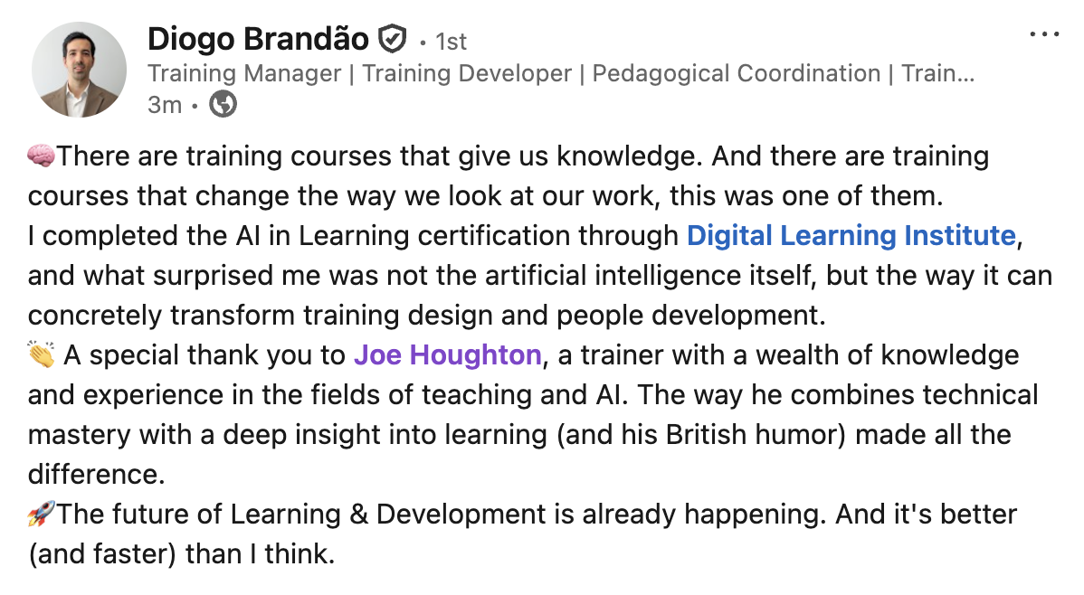 Joe advises several institutions on AI and has delivered dozens of courses and online sessions on AI in the past 4 years.